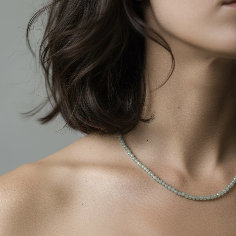 Uma choker no fio de nylon com cristal aventurina facetado natural 3mm - 38cm + 3cm de extensor /prata 925