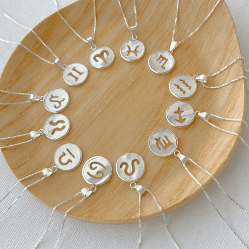 Colar veneziana 45cm  com pingente de signo em madrepérola 1.2cm / prata 925